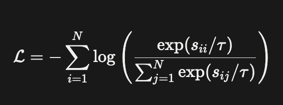 where τ is a hyper-parameter indicating temperature. Minimizing this loss function pushes each query qiq_i qi to have a large dot product with its matching did_i di relative to all other djd_j dj.